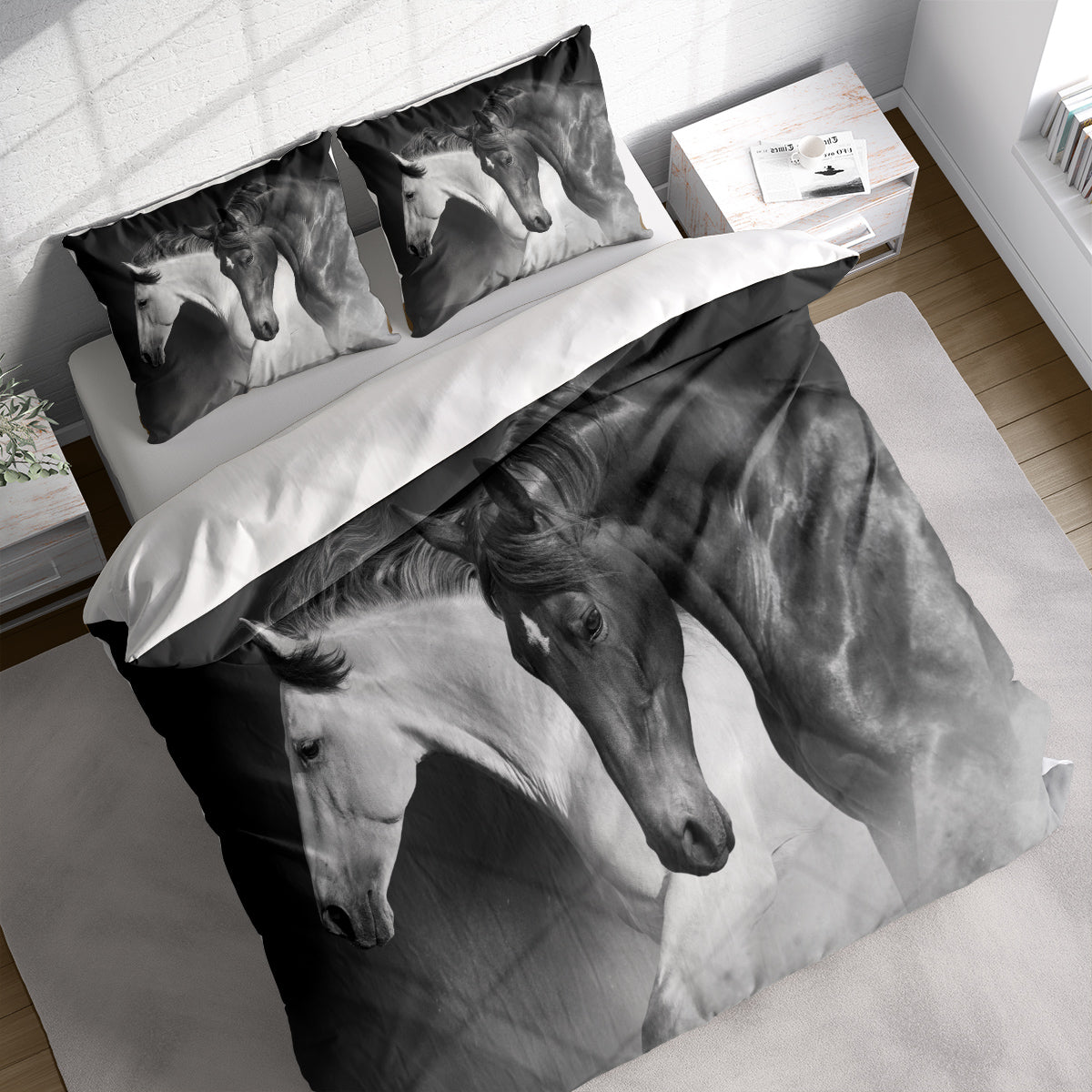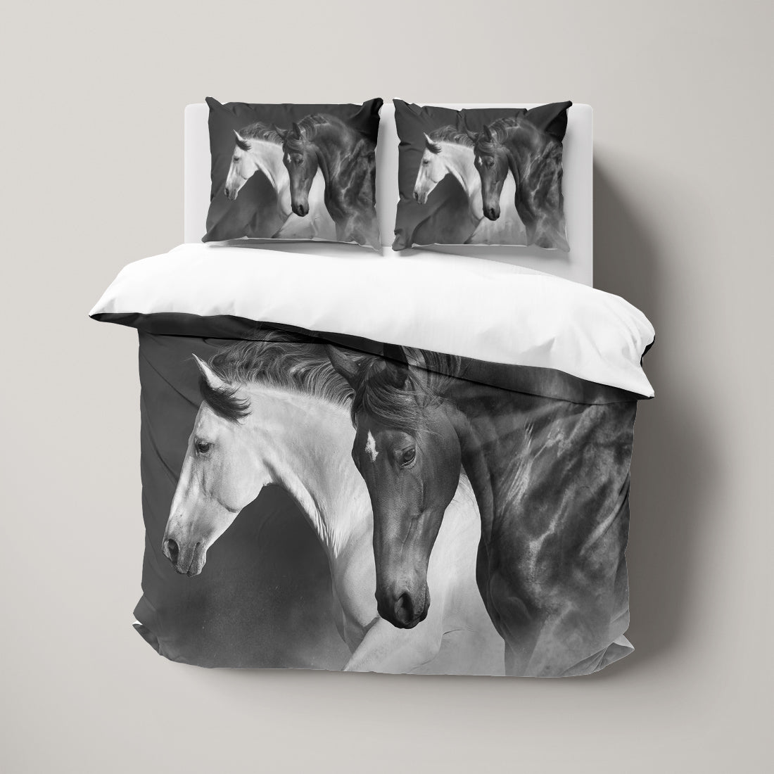 Horses Running Animals Black And White 3D Duvet Cover Set W Pillow Cover, Single Double Queen King Size, Printed Cotton Quilt Doona Cover