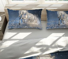 White Horse Animals Horses White 3D Duvet Cover Set W Pillow Cover, Single Double Queen King Size, Printed Cotton Quilt Doona Cover 3 Pcs