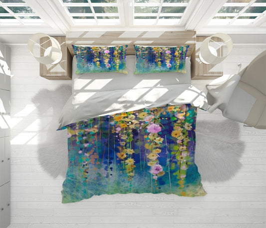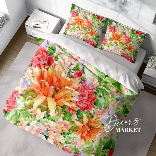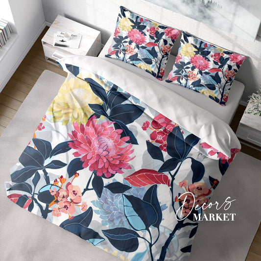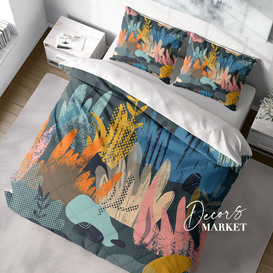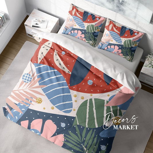 Abstract Flower Leaf Duvet Cover Set w Pillowcases, Colorful Floral Pattern 3D Quilt Cover, 3pc Single Double Queen King Size Doona Cover
