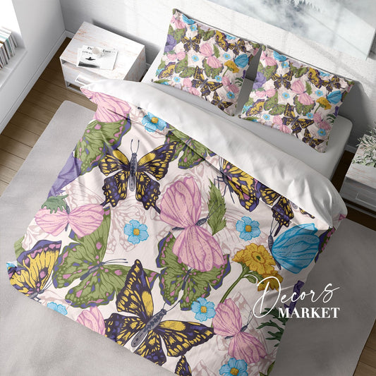 Butterfly Textile Leaf Duvet Cover Set w Pillowcases, Colorful Floral Patterns 3D Quilt Cover, 3pc Single Double Queen King Size Doona Cover