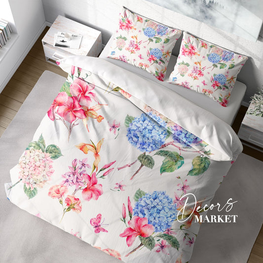 Watercolor Leaf Duvet Cover Set W Pillow Cover, Blue Floral Flowers 3D Quilt Cover, Single Double Queen King Size Doona Cover