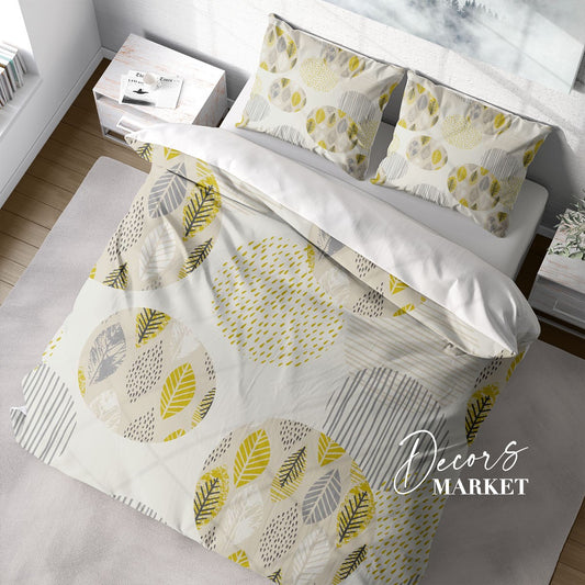 Leaf Polka Dots Duvet Cover Set w Pillowcases, Yellow Texture Patterns 3D Quilt Cover, 3pc Single Double Queen King Size Doona Cover