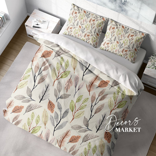 Tree Leaf Watercolor Duvet Cover Set w Pillowcases, Creamy Floral Patterns 3D Quilt Cover, 3pc Single Double Queen King Size Doona Cover