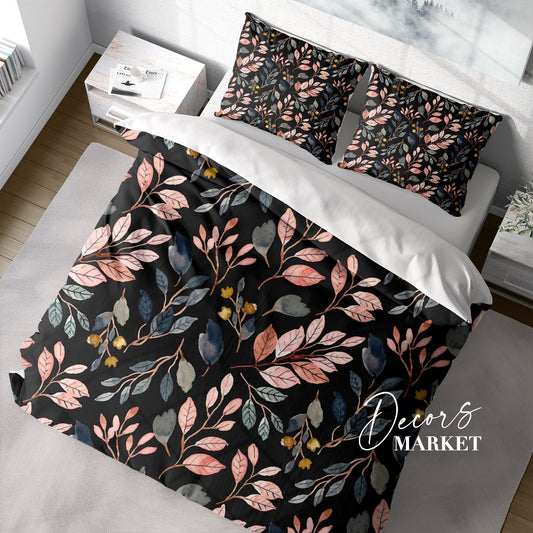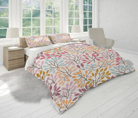 Leafy Branches Duvet Cover Set w Pillowcases, Colorful Floral Leaves 3D Quilt Cover, 3pc Single Double Queen King Size Doona Cover