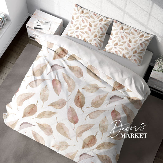Leafy Light Brown Leaves Duvet Cover Set w Pillowcases, Brown Floral Leaves 3D Quilt Cover, 3pc Single Double Queen King Size Doona Cover
