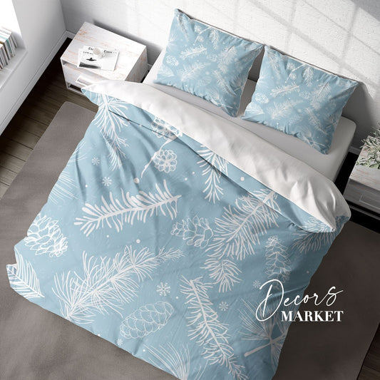 Snowflake Leaf Duvet Cover Set w Pillowcases, Blue Floral Patterns 3D Quilt Cover, 3pc Single Double Queen King Size Doona Cover