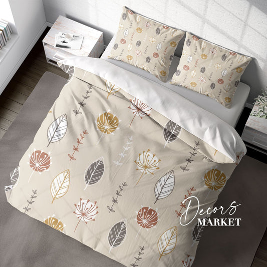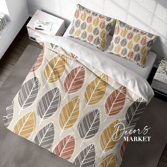 Leaf Illustration Duvet Cover Set w Pillowcases, Colorful Floral Pattern 3D Quilt Cover, 3pc Single Double Queen King Size Doona Cover