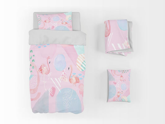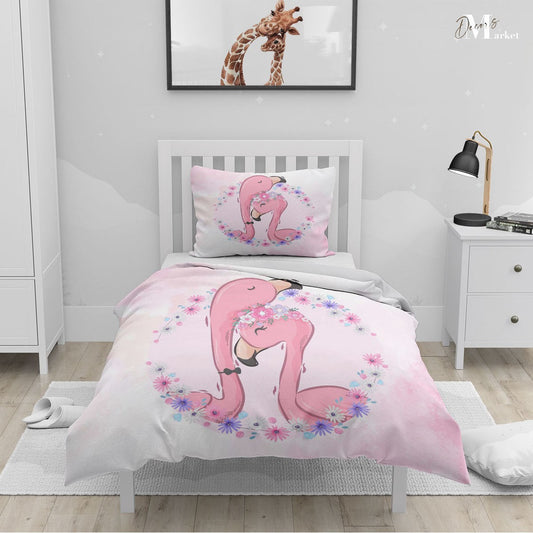 Flamingo Kids Animal Pink 3D Duvet Cover Set W Pillow Cover, Single Double Queen King Size, Printed Cotton Quilt Doona Cover 3 Pcs