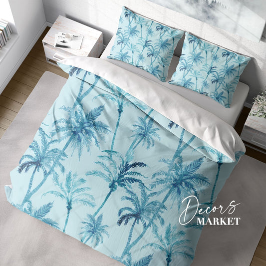 Palm Tree Duvet Cover Set W Pillow Cover, Blue Beach Beach 3D Quilt Cover, Single Double Queen King Size Doona Cover