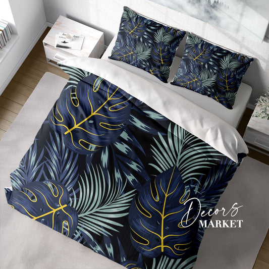 Tropical Leaves Duvet Cover Set w Pillowcases, Dark Floral Leaves 3D Quilt Cover, 3pc Single Double Queen King Size Doona Cover