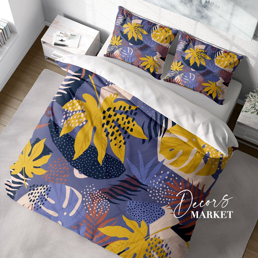 Tropical Banana Leaves Duvet Cover Set w Pillowcases, Bright Floral Patterns 3D Quilt Cover, 3pc Single Double Queen King Size Doona Cover