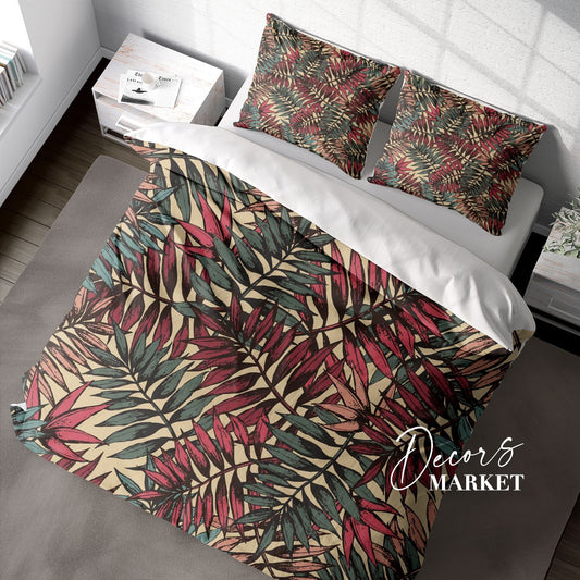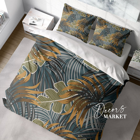 Palm Trees Duvet Cover Set W Pillow Cover, Green Floral Leaves 3D Quilt Cover, Single Double Queen King Size Doona Cover