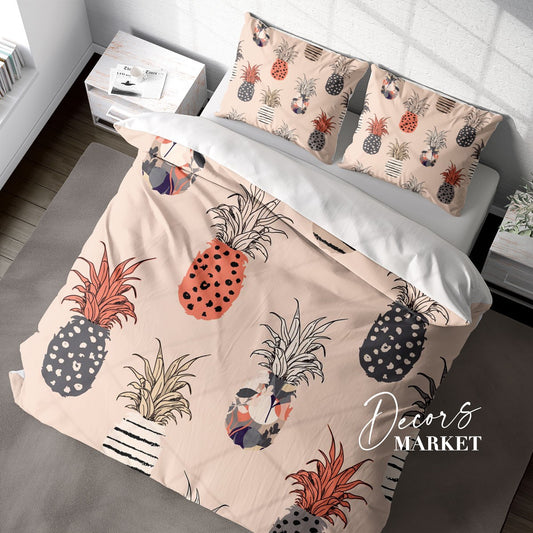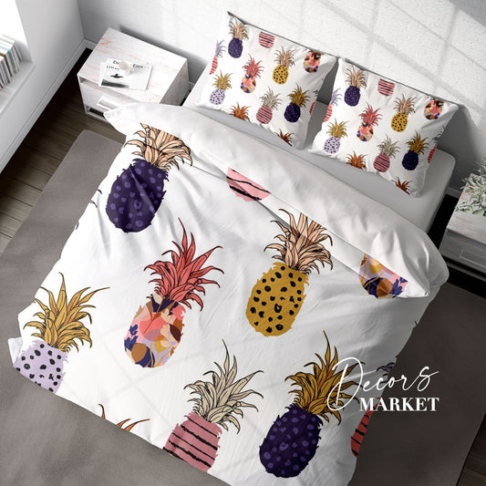 Pineapples Tropical Duvet Cover Set w Pillowcases, Colorful Floral Patterns 3D Quilt Cover, 3pc Single Double Queen King Size Doona Cover