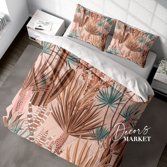Cactus Plants Botanical Duvet Cover Set w Pillowcases, Brown Floral Leaves 3D Quilt Cover, 3pc Single Double Queen King Size Doona Cover