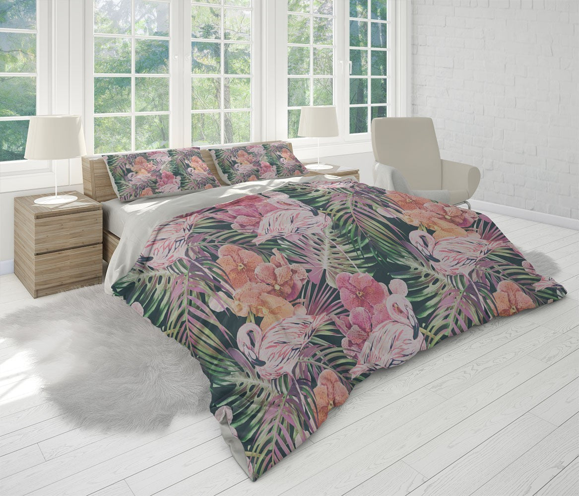 Flamingo Duvet Cover Set W Pillow Cover, Pink Animals Birds 3D Quilt Cover, Single Double Queen King Size Doona Cover