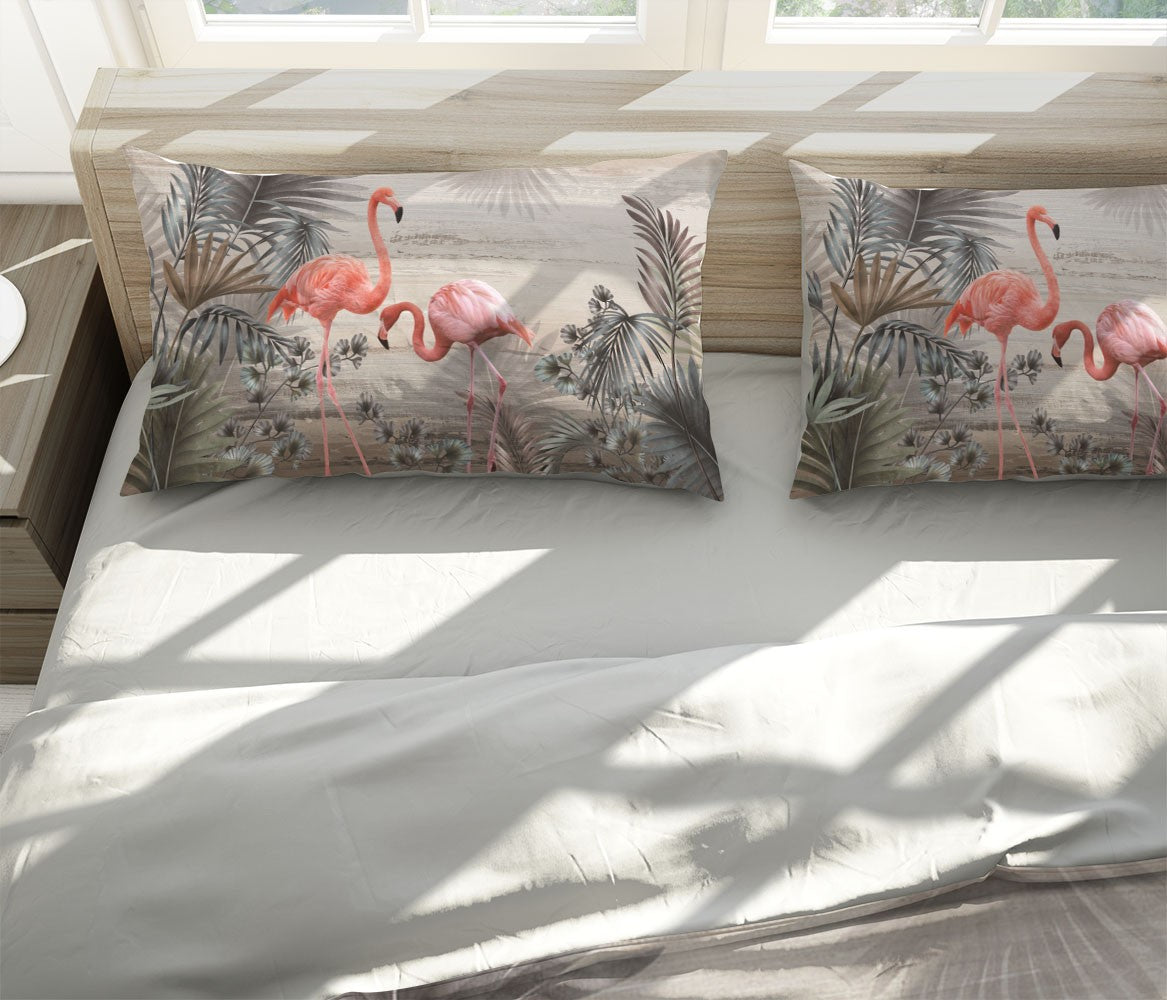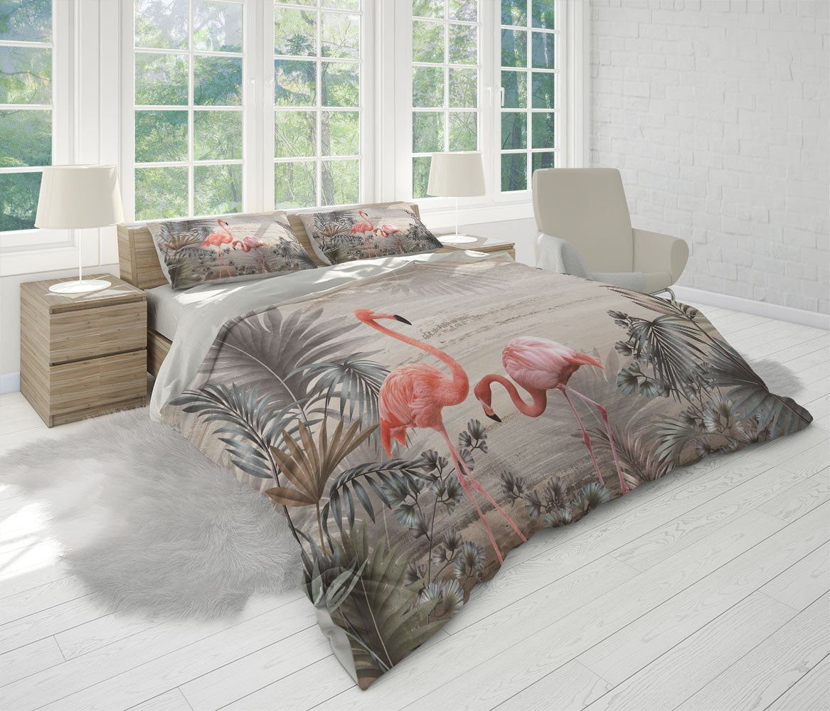 Flamingos Leaves Animals Birds Pink 3D Duvet Cover Set W Pillow Cover, Single Double Queen King Size, Printed Cotton Quilt Doona Cover 3 Pcs