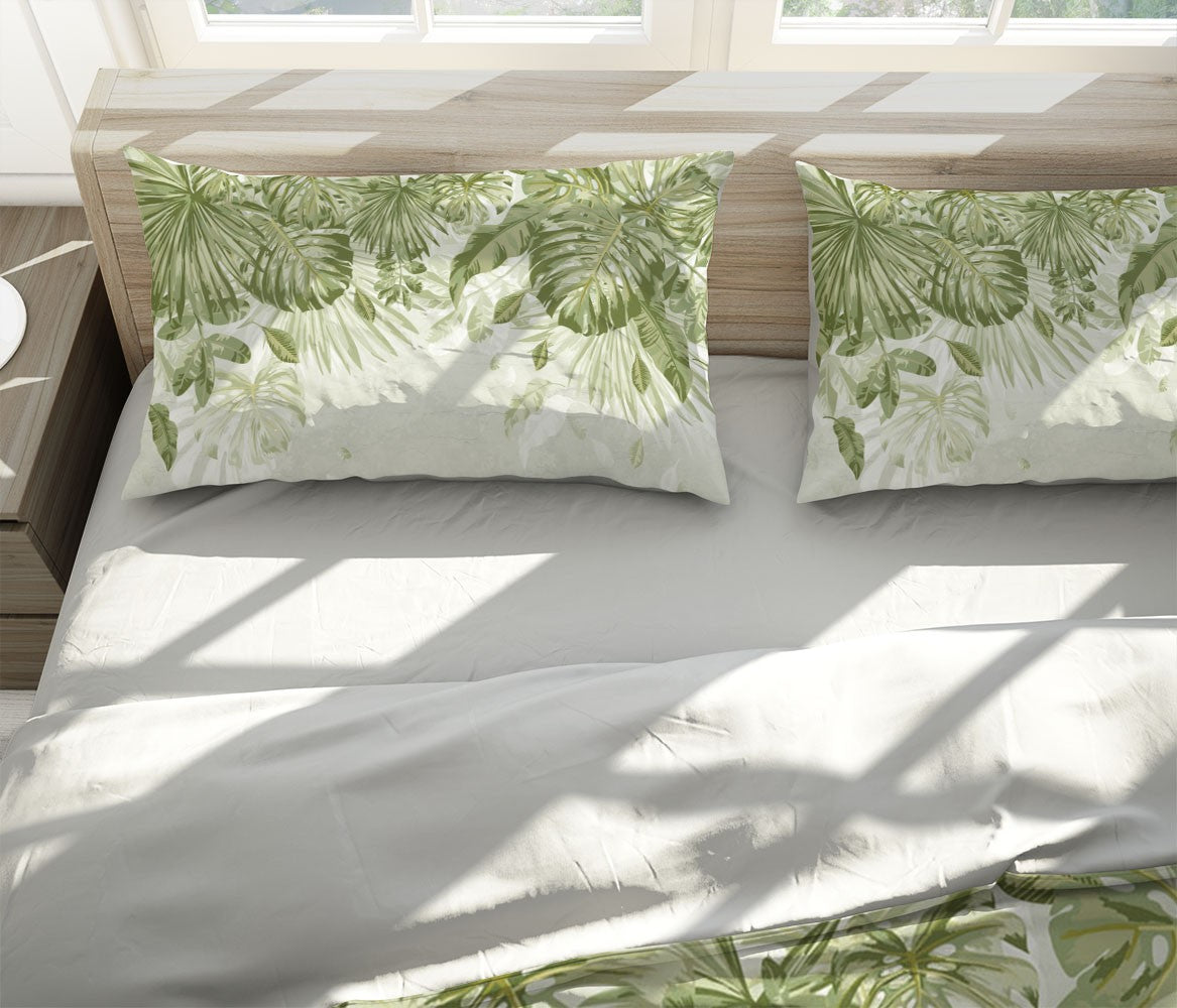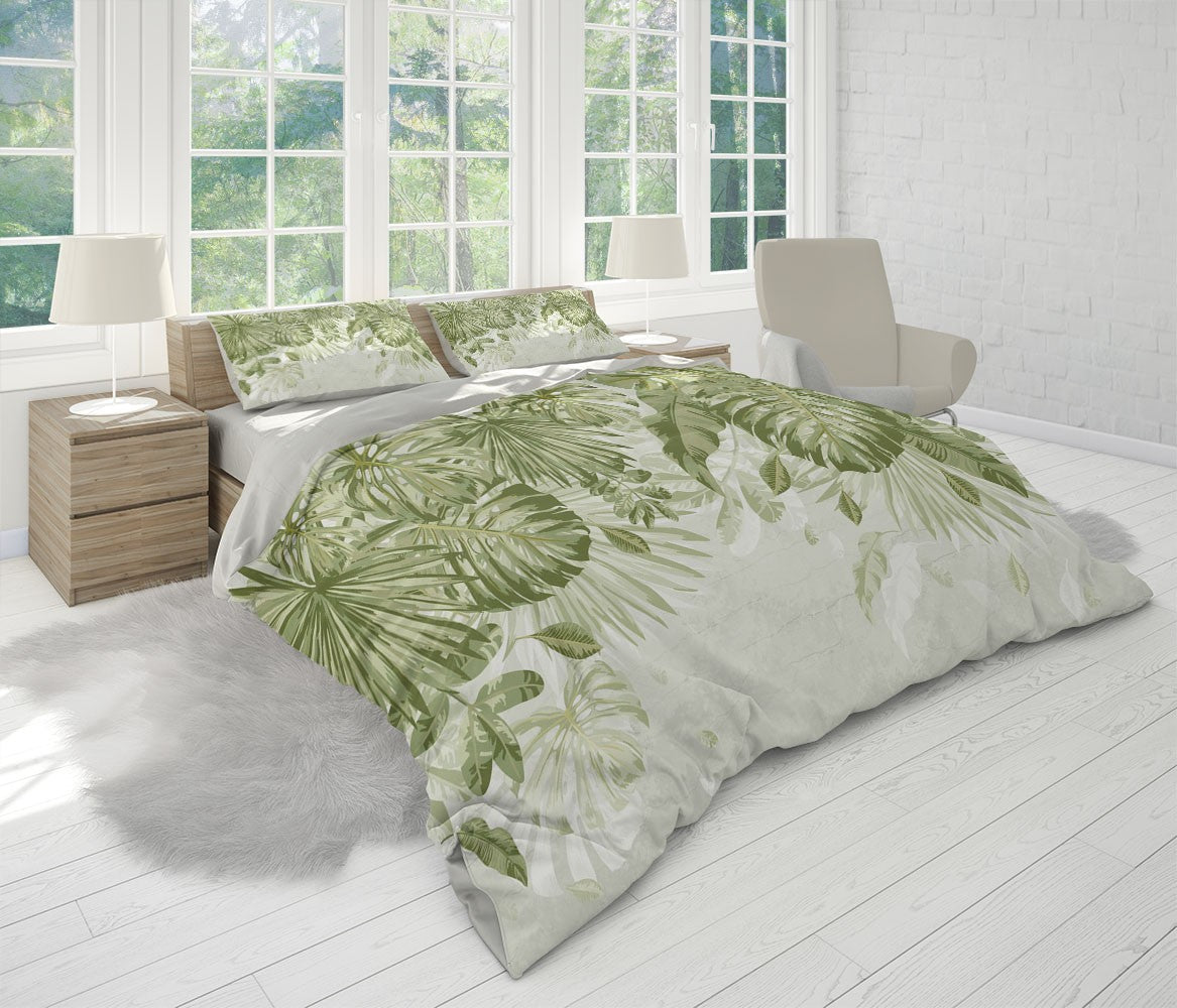 Monstera Green Floral Leaves Green 3D Duvet Cover Set W Pillow Cover, Single Double Queen King Size, Printed Cotton Quilt Doona Cover 3 Pcs