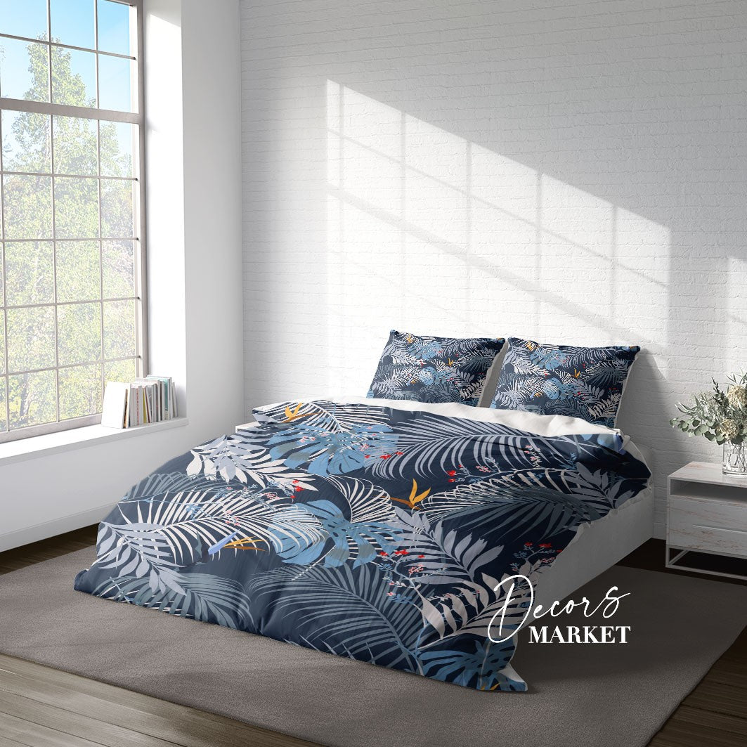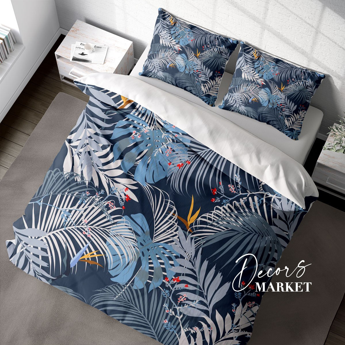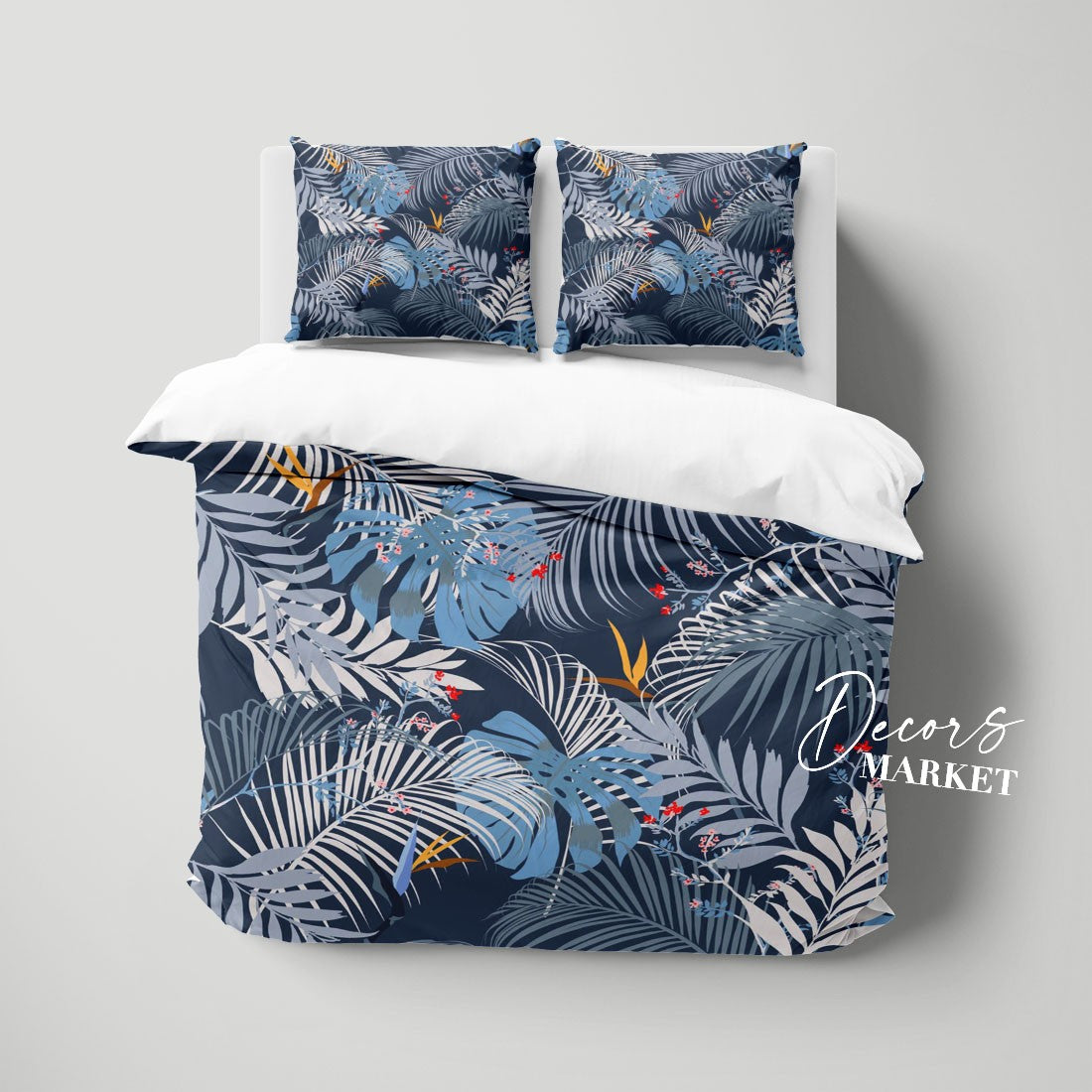 Tropical Leaves Duvet Cover Set w Pillowcases, Blue Floral Patterns 3D Quilt Cover, 3pc Single Double Queen King Size Doona Cover