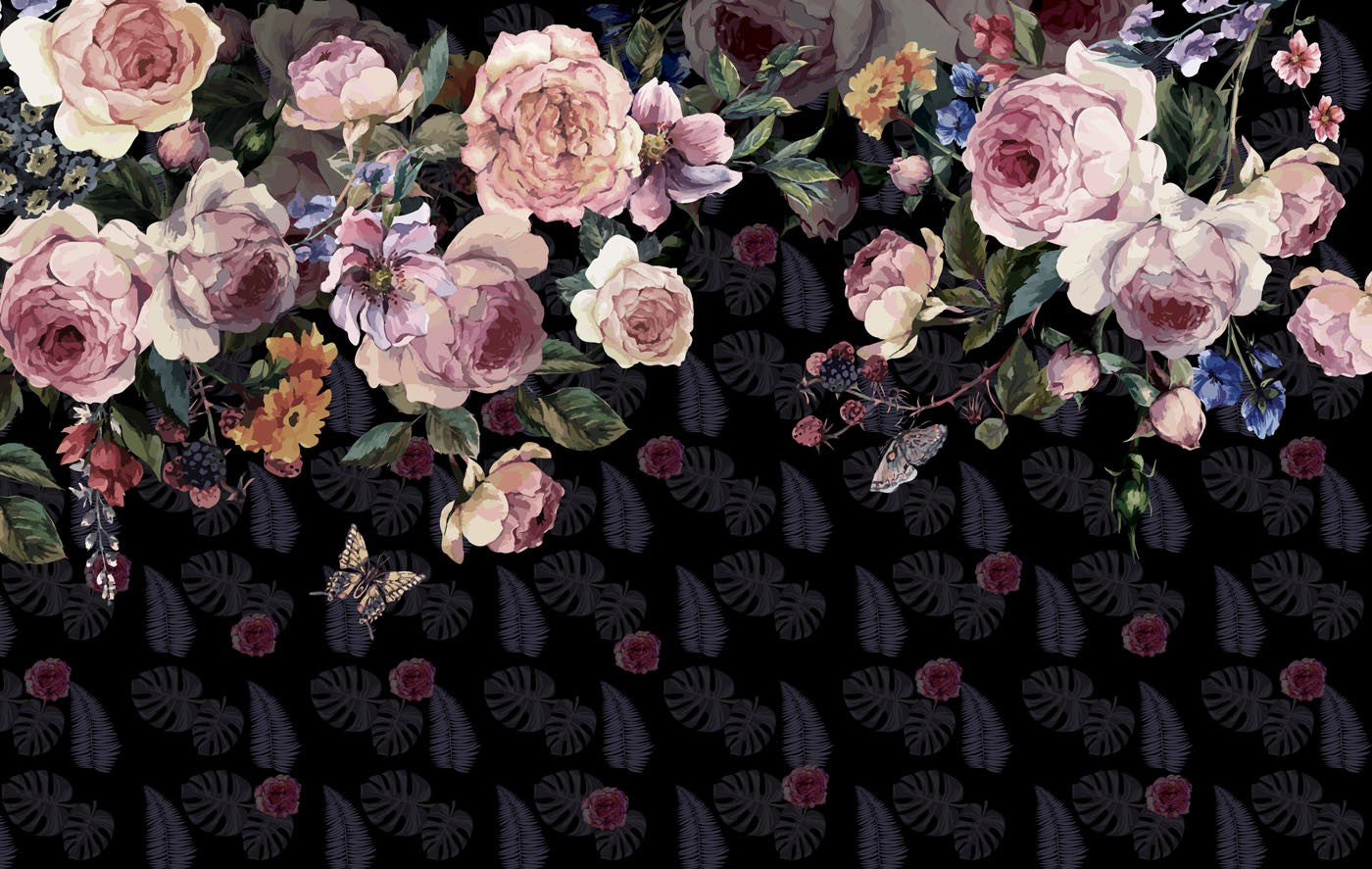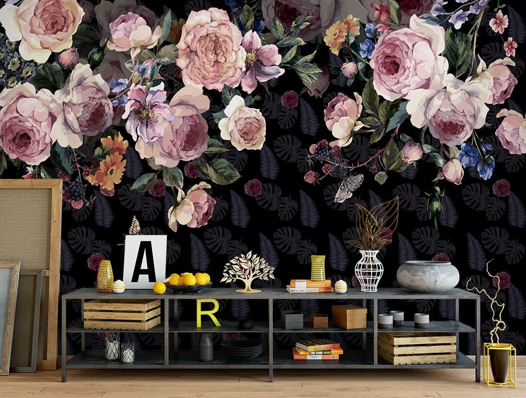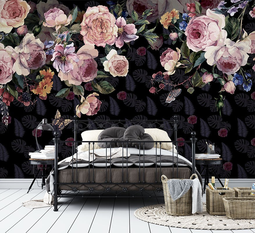 Rose Fujiman Floral Dutch Flowers Black Wallpaper Mural,Self-Adhesive Peel And Stick 3D Wall Paper,Removable Australian Company Wall Decor