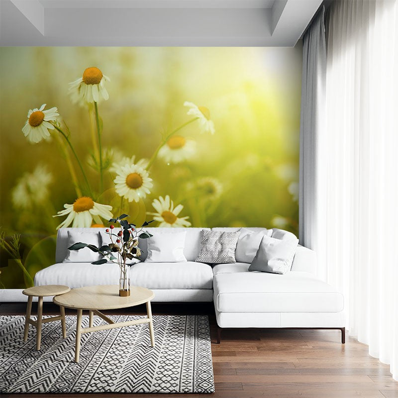 Daisy Floral Dutch Flowers Green Wallpaper Mural,Self-Adhesive Peel And Stick 3D Wall Paper,Designer Australian Company Wall Decor