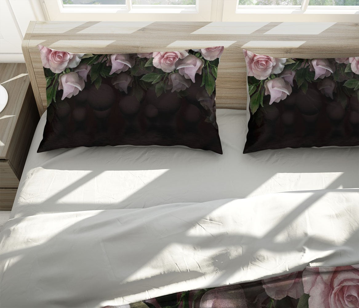 Roses Dark Bg Floral Flowers Black 3D Duvet Cover Set W Pillow Cover, Single Double Queen King Size, Printed Cotton Quilt Doona Cover 3 Pcs