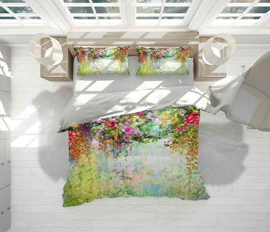 Bright Flowers Duvet Cover Set W Pillow Cover, Bright Floral Flowers 3D Quilt Cover, Single Double Queen King Size Doona Cover