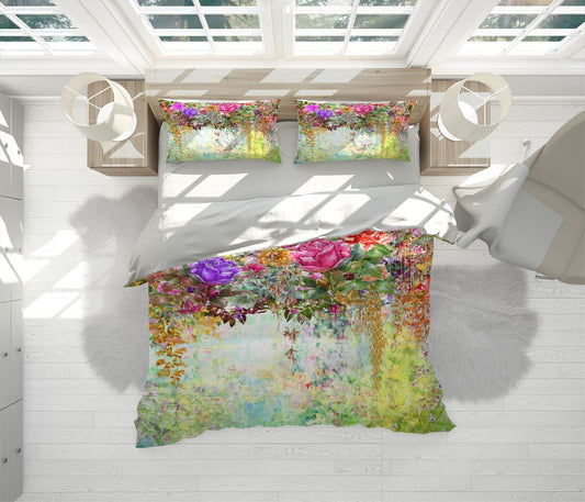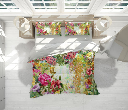 Rose Garden Duvet Cover Set W Pillow Cover, Bright Floral Flowers 3D Quilt Cover, Single Double Queen King Size Doona Cover
