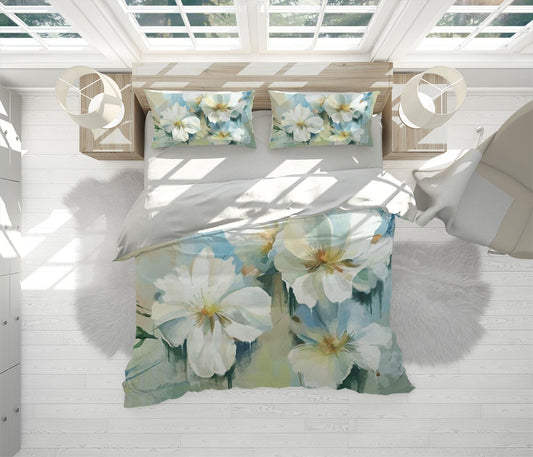 Flower Painting Duvet Cover Set W Pillow Cover, White Floral Flowers 3D Quilt Cover, Single Double Queen King Size Doona Cover