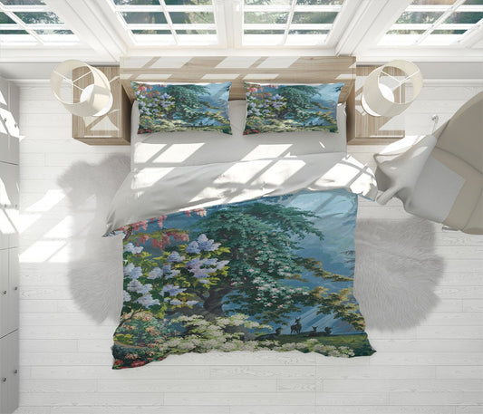 Flowers Trees Duvet Cover Set W Pillow Cover, Green Forest Jungle 3D Quilt Cover, Single Double Queen King Size Doona Cover