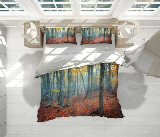 Autumn Forest Duvet Cover Set W Pillow Cover, Brown Nature Mountain 3D Quilt Cover, Single Double Queen King Size Doona Cover