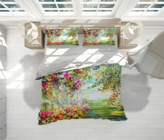 Forest Of Flowers Duvet Cover Set W Pillow Cover, Bright Floral Flowers 3D Quilt Cover, Single Double Queen King Size Doona Cover