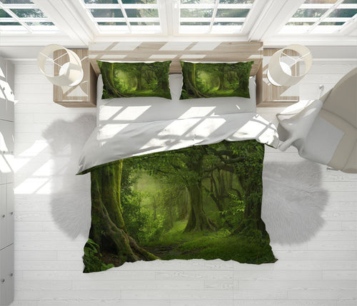 Mysterious Forest Duvet Cover Set W Pillow Cover, Green Forest Forest 3D Quilt Cover, Single Double Queen King Size Doona Cover