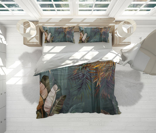 Palm Tree Forest Jungle Green 3D Duvet Cover Set W Pillow Cover, Single Double Queen King Size, Printed Cotton Quilt Doona Cover 3 Pcs