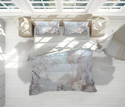 Tropical Trees Forest Jungle Blue 3D Duvet Cover Set W Pillow Cover, Single Double Queen King Size, Printed Cotton Quilt Doona Cover 3 Pcs