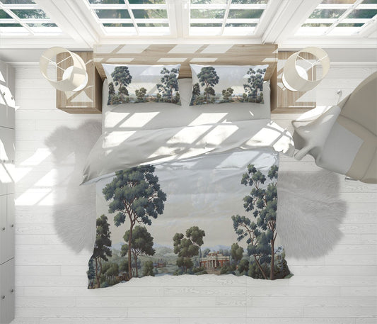 Misty Forest Duvet Cover Set W Pillow Cover, Gray Art Chinoiserie 3D Quilt Cover, Single Double Queen King Size Doona Cover