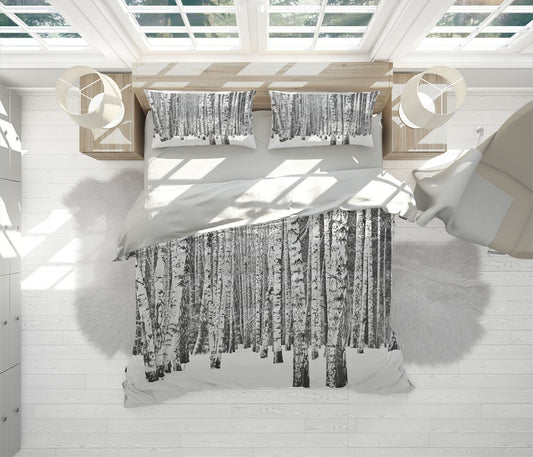Winter Birch Duvet Cover Set W Pillow Cover, Black And White Forest Seasons 3D Quilt Cover, Single Double Queen King Size Doona Cover