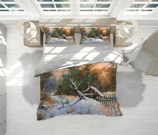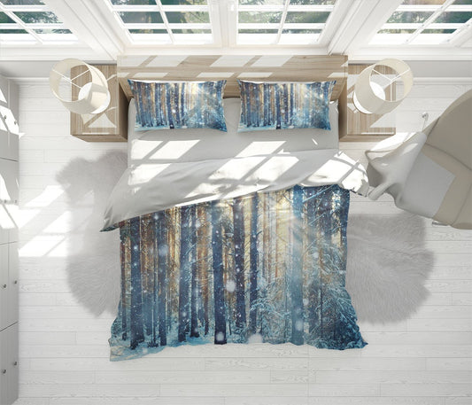 Winter Forest Duvet Cover Set W Pillow Cover, White Forest Seasons 3D Quilt Cover, Single Double Queen King Size Doona Cover