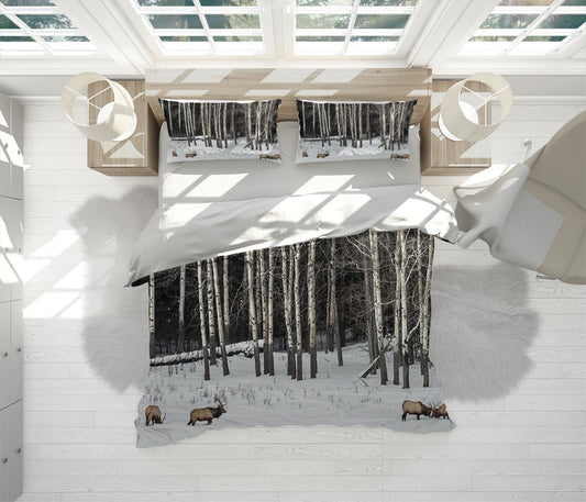 Snow Antelope Duvet Cover Set W Pillow Cover, White Forest Forest 3D Quilt Cover, Single Double Queen King Size Doona Cover