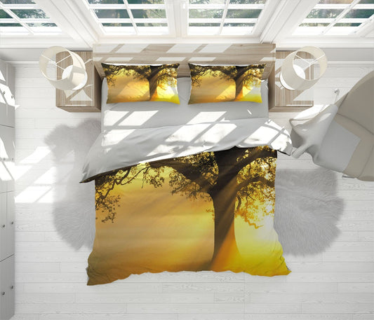 Sunshine Tree Duvet Cover Set W Pillow Cover, Gold Forest Plant 3D Quilt Cover, Single Double Queen King Size Doona Cover