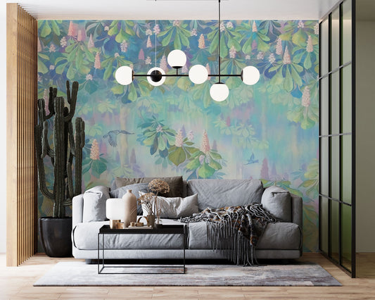Blossom Forest Blue Wallpaper Mural,Self-Adhesive Peel And Stick 3D Wall Decal,Designer Removable Wall Decor