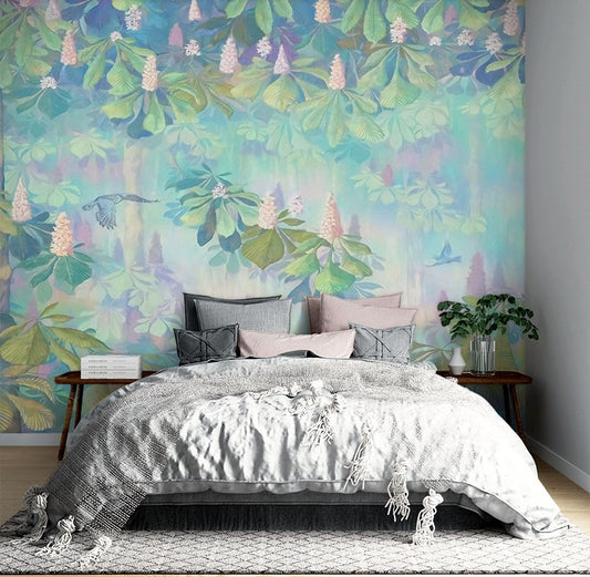 Forest Blossom Floral Leaves Green Wallpaper Mural,Self-Adhesive Peel And Stick 3D Wall Art,Australian Company Bedroom Wall Decor