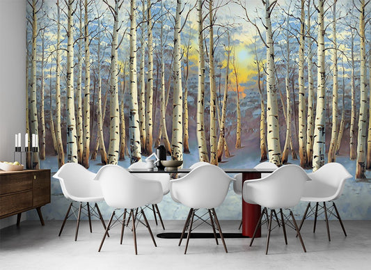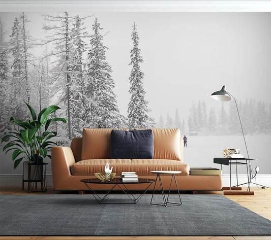 Winter Landscape Forest White Wallpaper Mural,Self-Adhesive Peel And Stick 3D Wall Art,Australian Company Designer Wall Decor