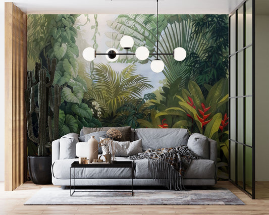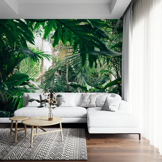Tropical Forest Jungle Green Wallpaper Mural,Self-Adhesive Peel And Stick 3D Wall Decal,Bedroom Designer Wall Decor