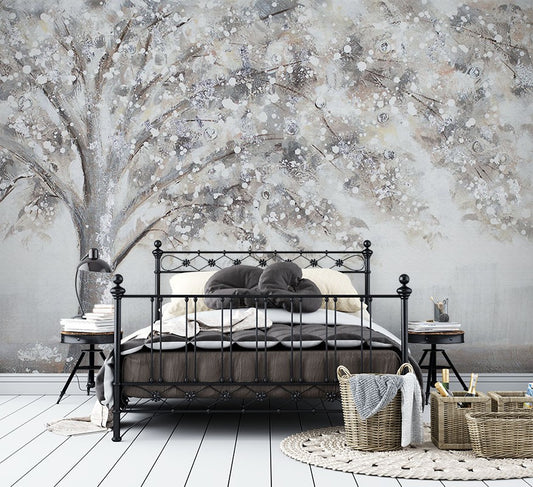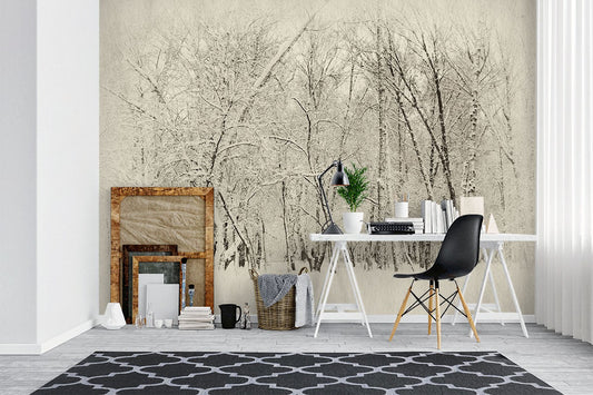 Tree Snow Forest Plant Gray Wallpaper Mural,Self-Adhesive Peel And Stick 3D Wall Decor,Removable Bedroom Wall Decor