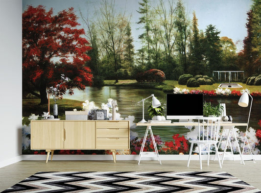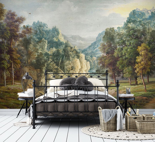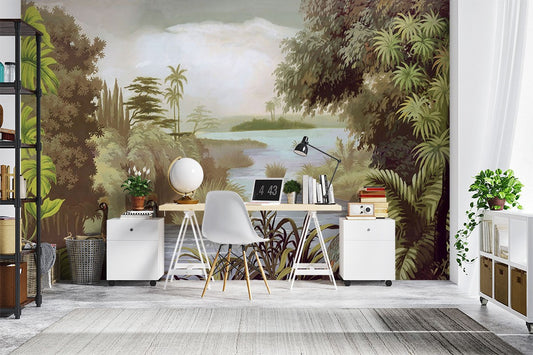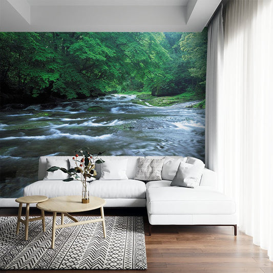 Stream Forest Art Traditional Green Wallpaper Mural,Self-Adhesive Peel And Stick 3D Wall Art,Removable Australian Company Wall Decor