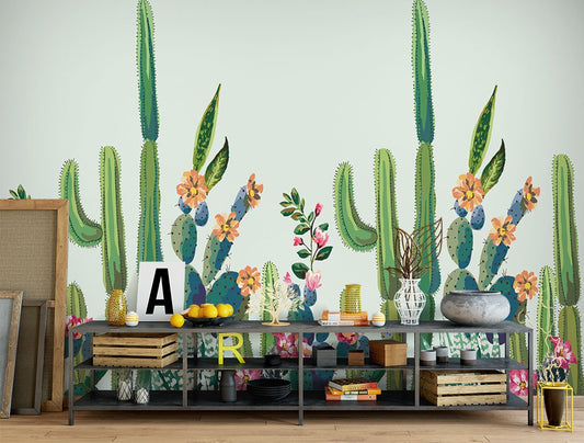 Cactus Forest Plant Green Wallpaper Mural,Self-Adhesive Peel And Stick 3D Wall Decor,Australian Company Designer Wall Decor