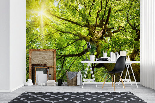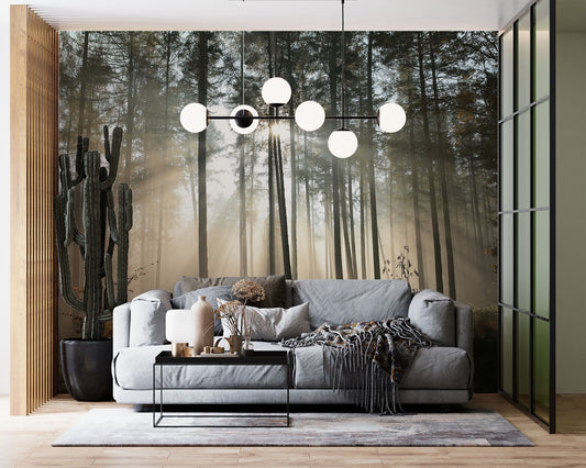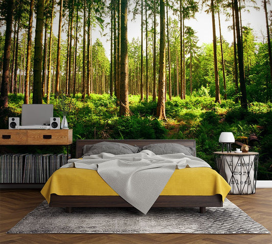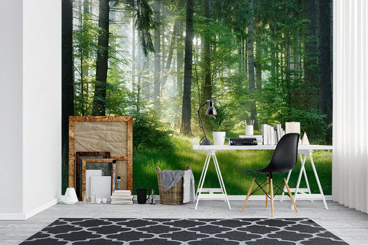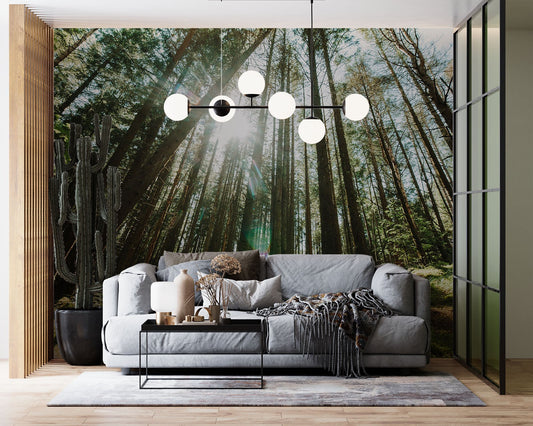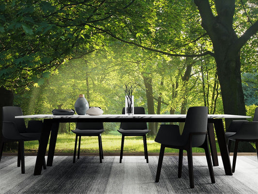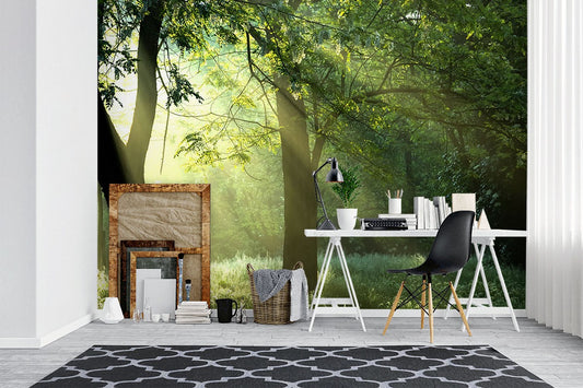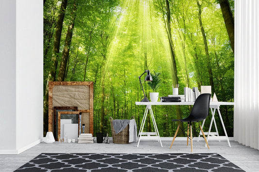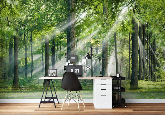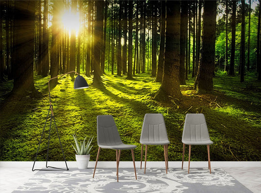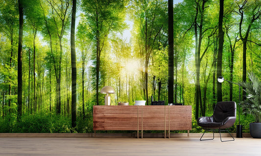 Sunshine Woods Forest Green Wallpaper Mural,Self-Adhesive Peel And Stick 3D Wall Decor,Designer Australian Company Wall Decor