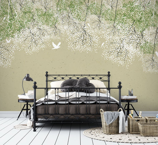 Forest Birds Seasons Creamy Wallpaper Mural,Self-Adhesive Peel And Stick 3D Wall Decor,Australian Company Designer Wall Decor