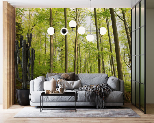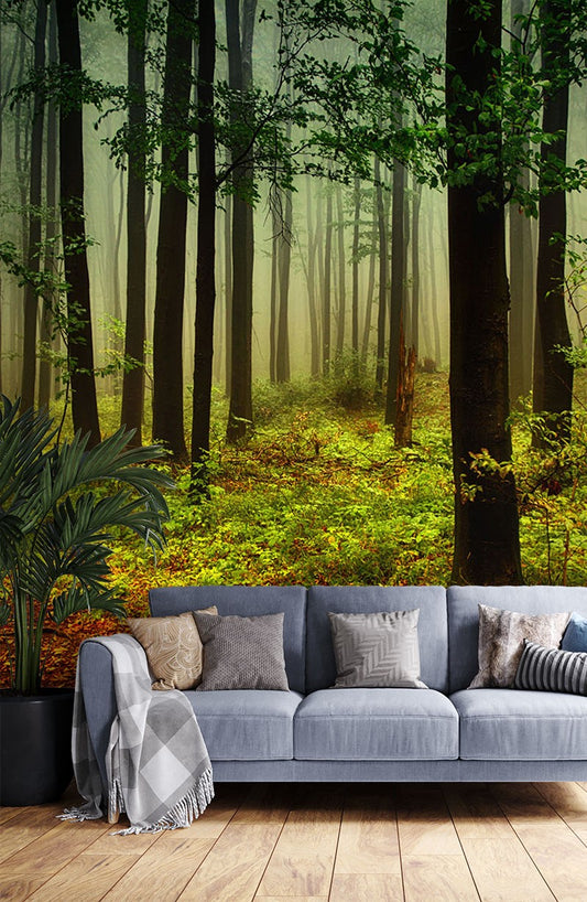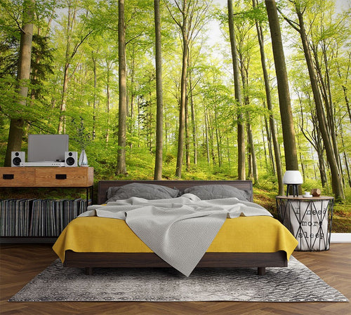 Forest Light Green Wallpaper Mural,Self-Adhesive Peel And Stick 3D Wall Mural,Australian Company Bedroom Wall Decor