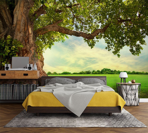 Big Tree Forest Green Wallpaper Mural,Self-Adhesive Peel And Stick 3D Wall Art,Bedroom Designer Wall Decor